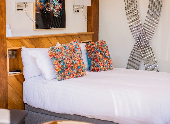 Olivia’s Roost is a real rare gem. Perched on charming saddle stones and flooded with natural light, this unique glass-encased lodge is a little slice of heaven surrounded by nature. Featuring vibrant modern artwork, honeyed oak beams, a luxurious double-ended copper bath, and a private garden with hot tub, there’s no better place to shed your responsibilities, switch off your notifications, and enjoy uninterrupted quality time with someone you love.