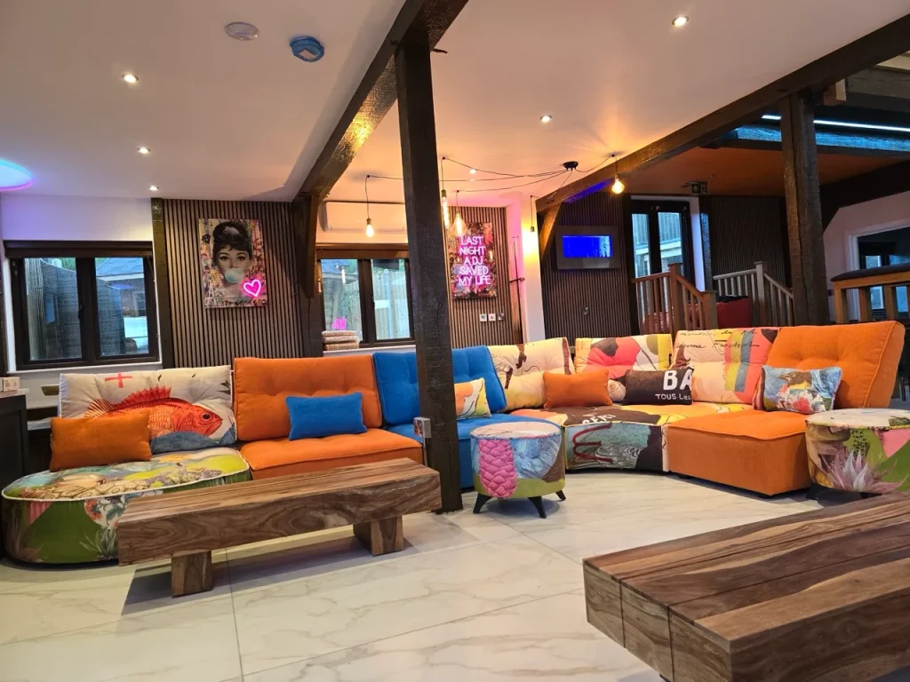 We don’t offer a formal programme or on-site instructors and that’s intentional. Our guests have the freedom to create a retreat that suits their needs, whether that means rolling out a yoga mat in the morning, meditating in a quiet corner of the garden, or simply walking the nearby footpaths without a phone in hand.The Big Oak Barn, a.k.a. BOB, our largest indoor space, can be reconfigured to suit a group yoga session, mindfulness workshop, or creative gathering. The modular sofas can be moved to create an open practice area or left in place for laid-back lounging between sessions.